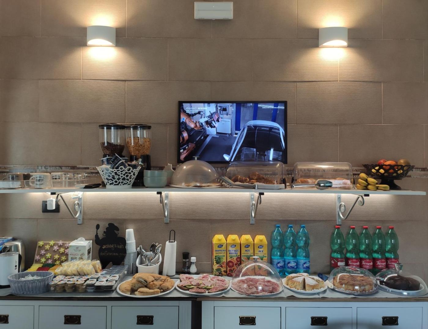 Ogni alloggio presenta un bagno privato con bidet, l’aria condizionata, una TV a schermo piatto e un frigorifero.