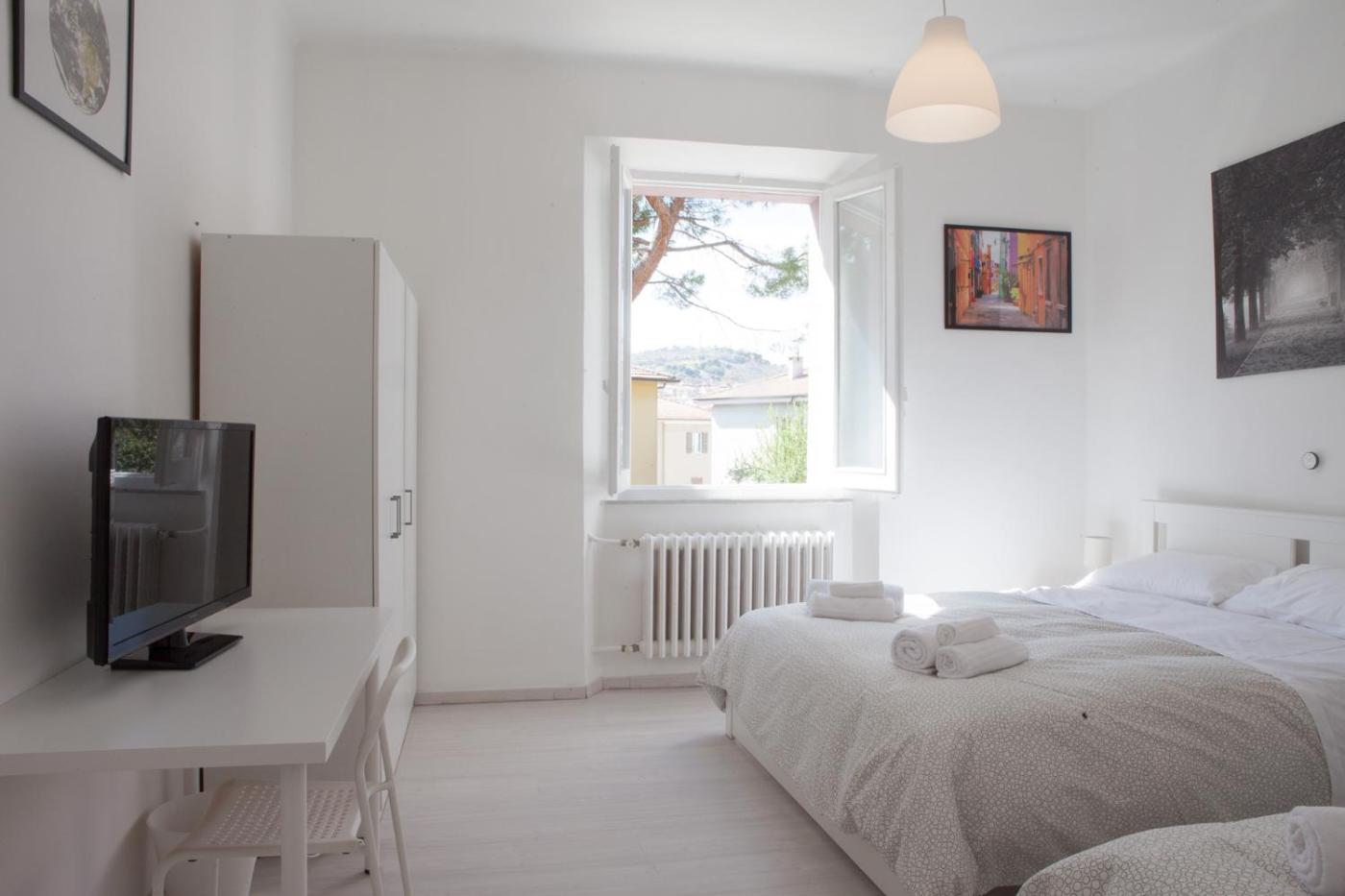 Camera Tripla Economy con Bagno in Comune. The triple room features a seating area, a dining area, as well as a shared bathroom boasting a shower and a bidet. In the well-fitted kitchen, guests will find a stovetop, a refrigerator, kitchenware and a microwave. The triple room offers a wardrobe, an electric kettle, heating, a flat-screen TV, as well as a quiet street view. The unit has 2 beds. ;