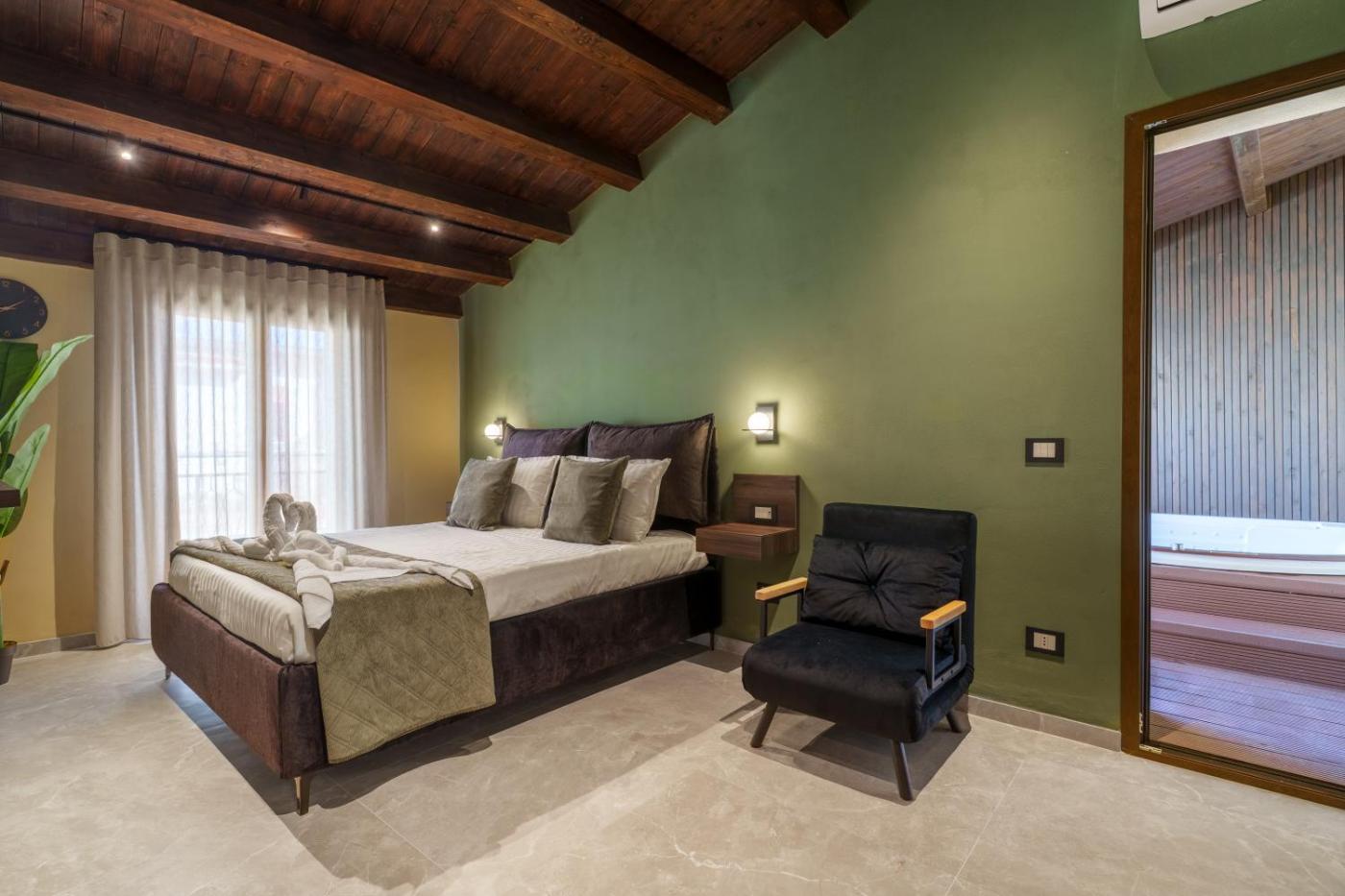 Camera Queen con Vasca Idromassaggio. This double rooms standout feature is the hot tub. The spacious double room offers air conditioning, a minibar, a terrace with a quiet street view as well as a private bathroom boasting a bath. The unit has 2 beds. ;