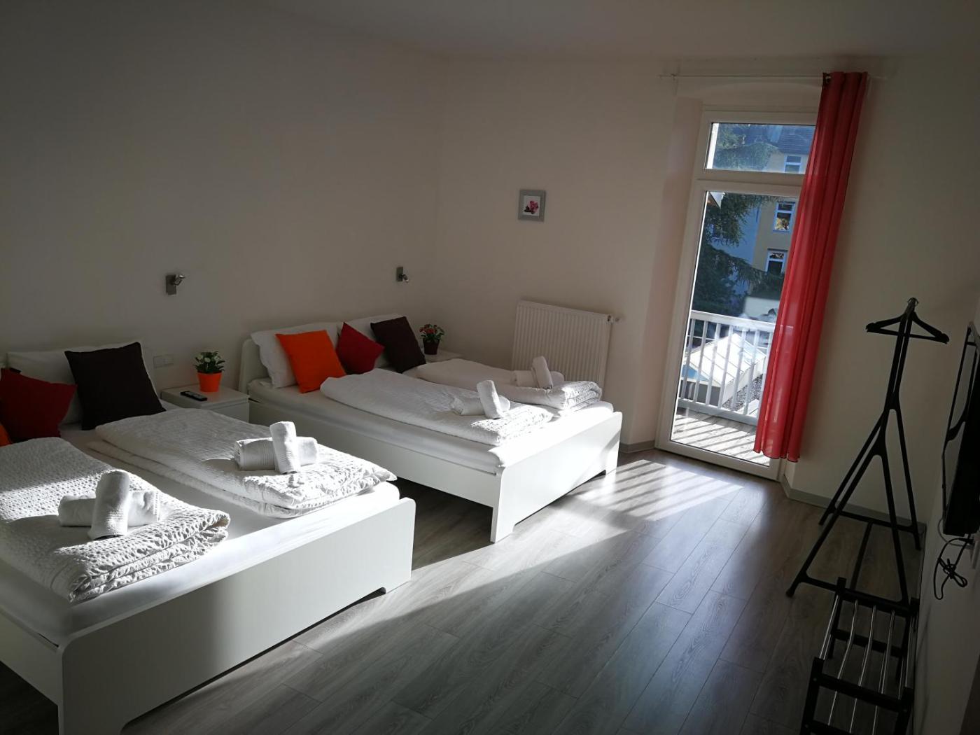 Camera Familiare. La camera familiare è completa di bagno privato con doccia. Camera familiare con riscaldamento, TV a schermo piatto e balcone. L’alloggio presenta 2 letti. ;