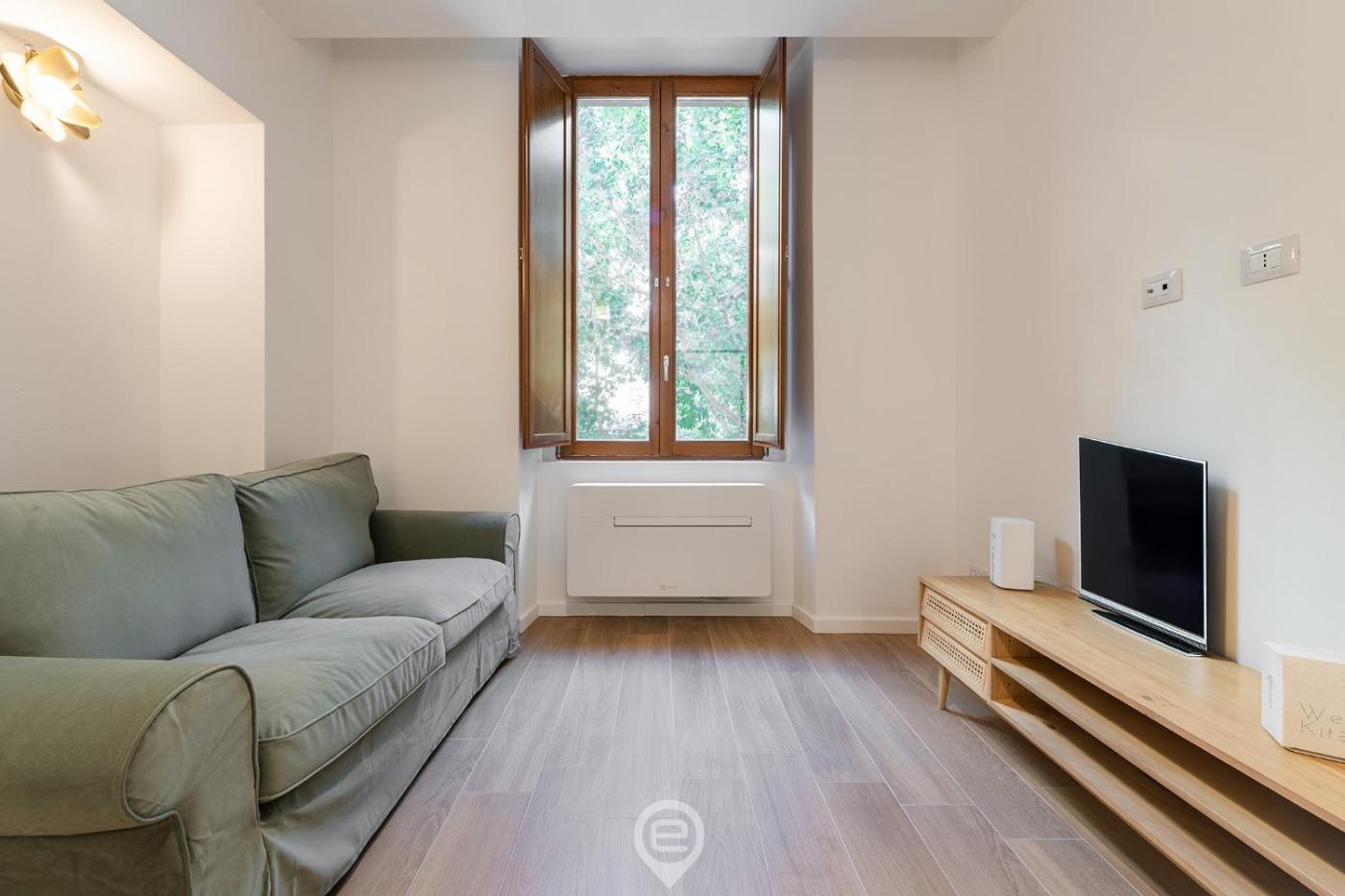 Appartamento con 1 Camera da Letto. This air-conditioned apartment consists of 1 living room, 1 separate bedroom and 1 bathroom with a shower. The fully equipped kitchenette features a stovetop, a refrigerator, a dishwasher and kitchenware. The apartment provides a washing machine, a tea and coffee maker, a seating area, a dining area, as well as a flat-screen TV. The unit offers 1 bed.