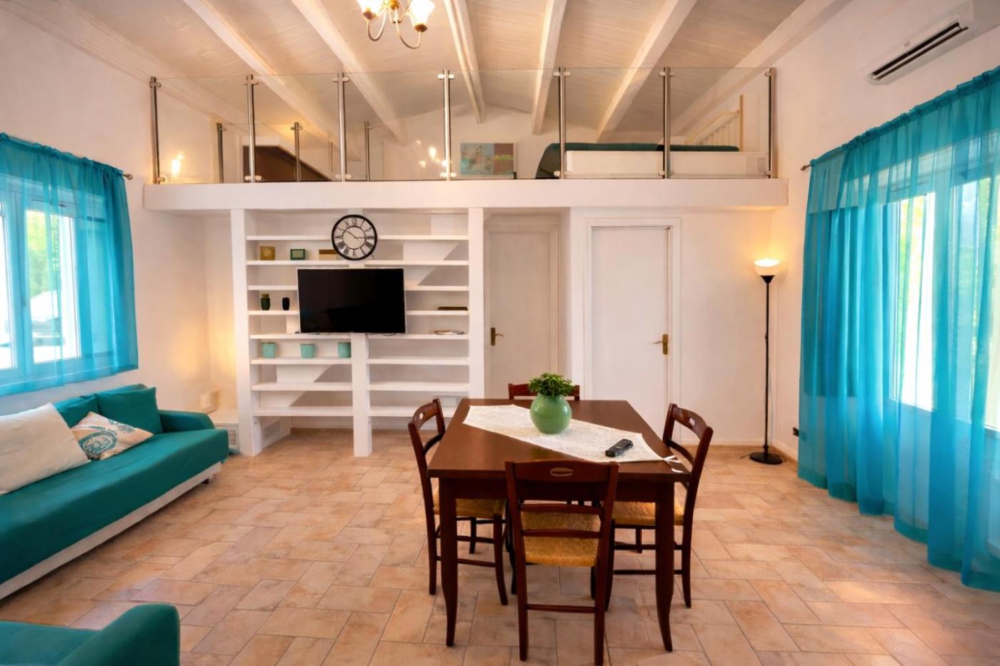 Questa casa vacanze con aria condizionata comprende 2 camere da letto, un soggiorno, una cucina con utensili e 2 bagni. In dotazione troverete una TV a schermo piatto.