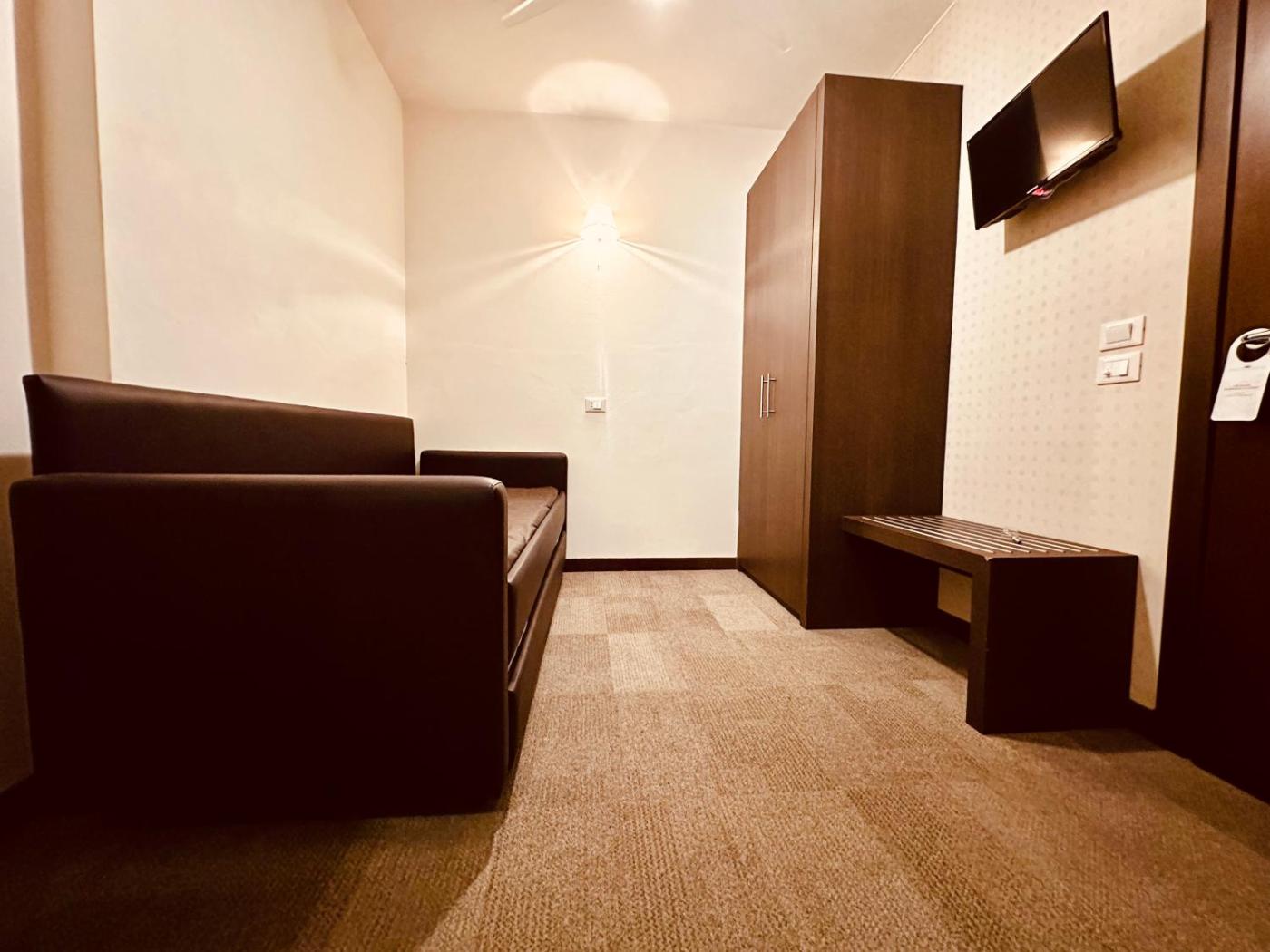 Camera Matrimoniale Economy. Camera matrimoniale climatizzata con ingresso indipendente, dotata di terrazza con vista sul cortile interno e bagno privato con doccia. L’alloggio dispone di 1 letto. ;