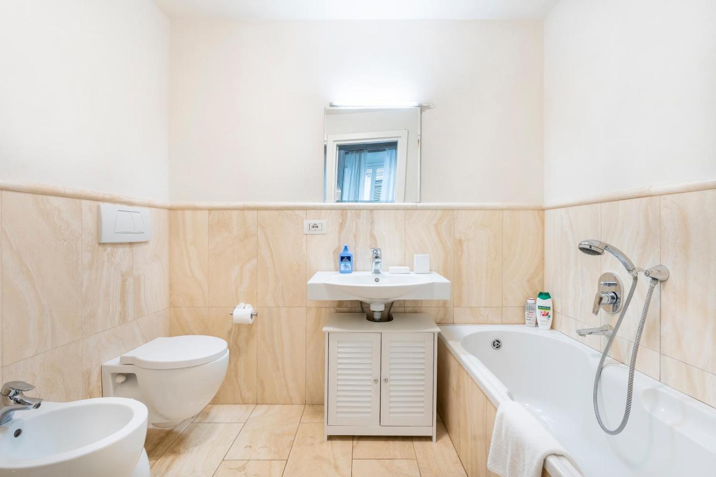 Appartamento con 2 Camere da Letto. This air-conditioned apartment features 1 living room, 2 separate bedrooms and 2 bathrooms with a shower. In the well-fitted kitchen, guests will find a stovetop, a refrigerator, kitchenware and a microwave. The apartment features a flat-screen TV, a tea and coffee maker, a wardrobe, parquet floors as well as city views. The unit has 4 beds. ;