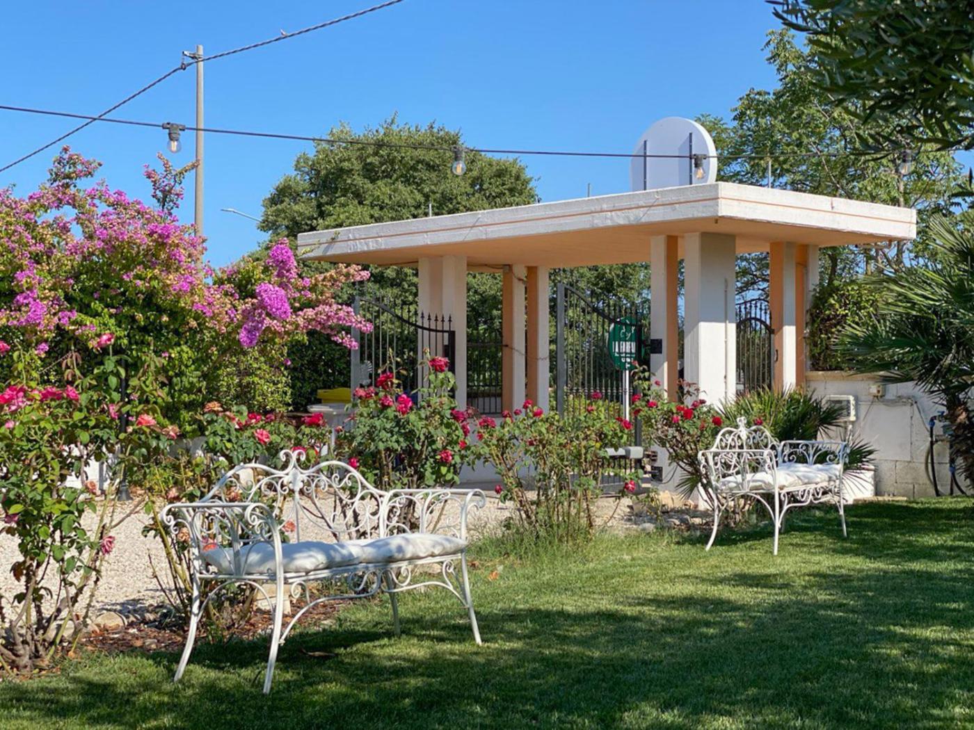 Camera Matrimoniale con Accesso Disabili. Guests will find a stovetop, a refrigerator and kitchenware in the kitchen. The double room also includes a barbecue. This air-conditioned double room has a desk, an outdoor dining area, garden views and a private bathroom. The unit has 1 bed. ;