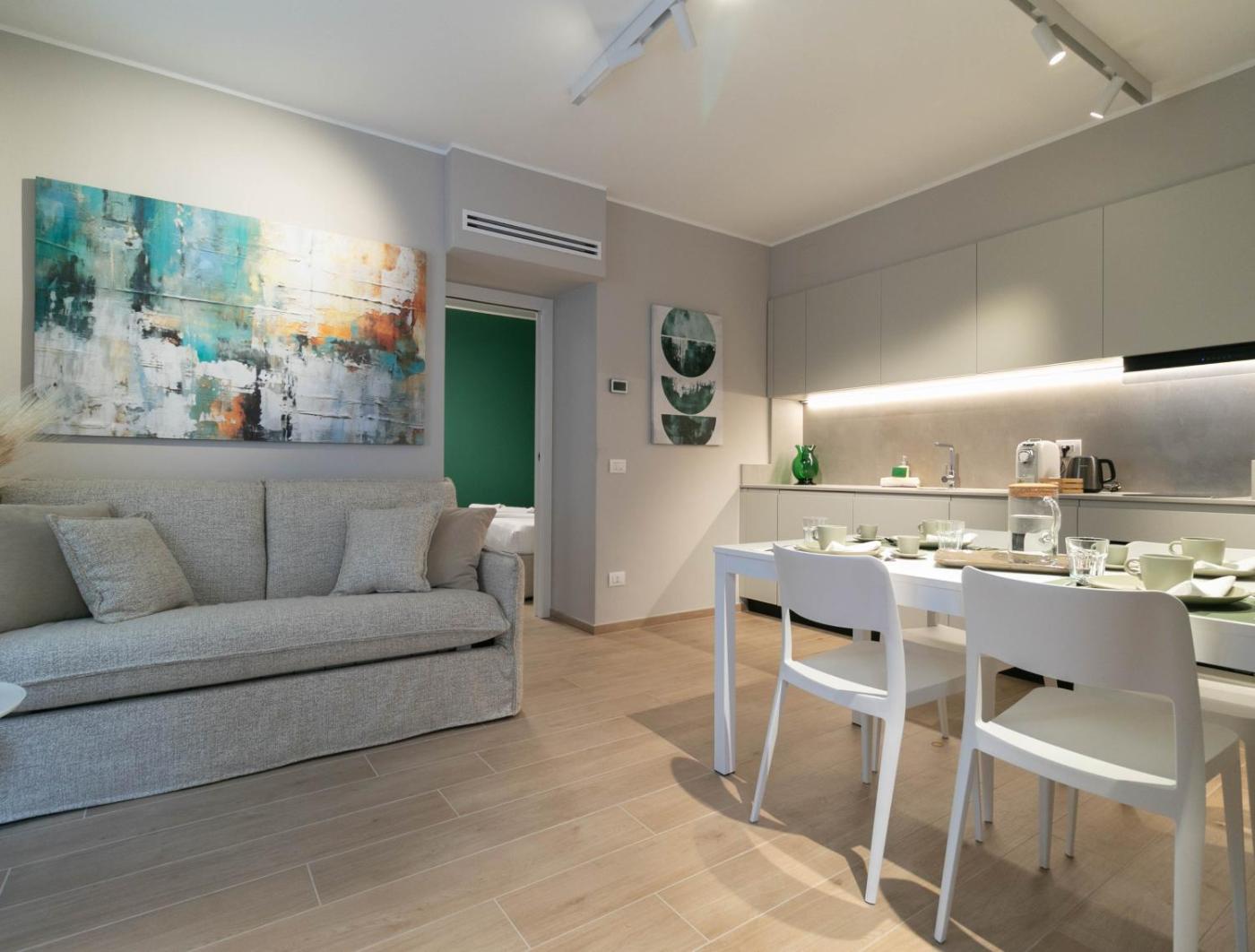 Appartamento con 1 Camera da Letto. Featuring a private entrance, this air-conditioned apartment consists of 1 living room, 1 separate bedroom and 1 bathroom with a shower and a bidet. Meals can be prepared in the well-fitted kitchen, which is equipped with a stovetop, a refrigerator, a dishwasher and kitchenware. The apartment provides a washing machine, a tea and coffee maker, a wardrobe, a sofa, as well as a TV with cable channels. The unit offers 2 beds.