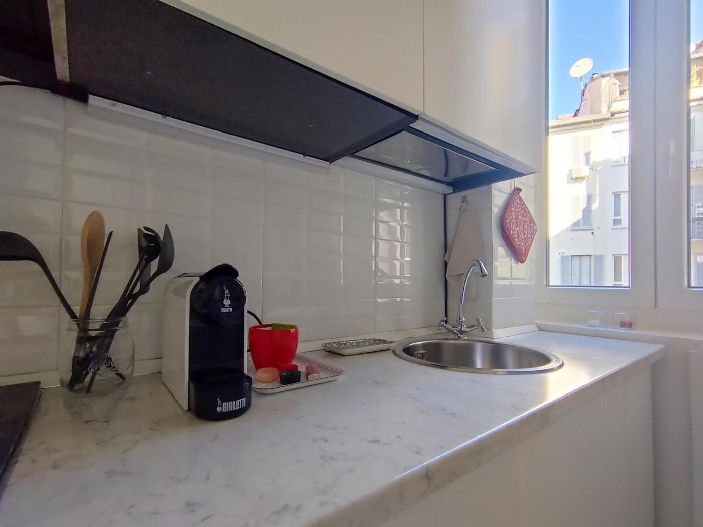 Questo appartamento con aria condizionata comprende 1 camera da letto, un soggiorno, una cucina con utensili, frigorifero e macchina da caffè, e 1 bagno con bidet e doccia. Presso questo appartamento troverete asciugamani e lenzuola a disposizione.