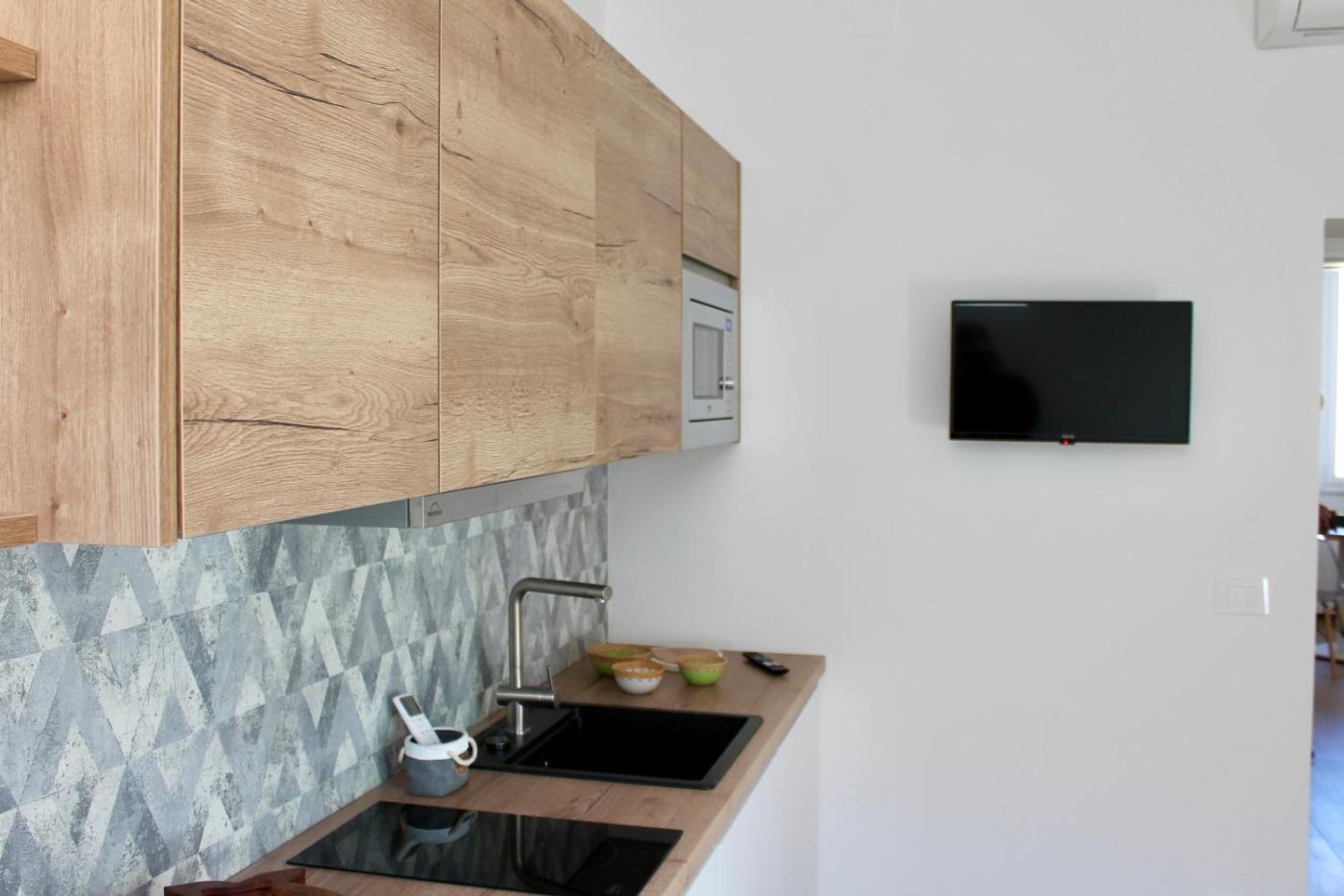 Appartamento con 1 Camera da Letto - Lato Mare. Boasting a private entrance, this air-conditioned apartment features 1 living room, 1 separate bedroom and 1 bathroom with a walk-in shower and a bidet. Guests can make meals in the kitchen that has a stovetop, a refrigerator, kitchenware and a microwave. The apartment features a flat-screen TV with streaming services, a washing machine, soundproof walls, a tea and coffee maker as well as sea views. The unit has 2 beds. ;