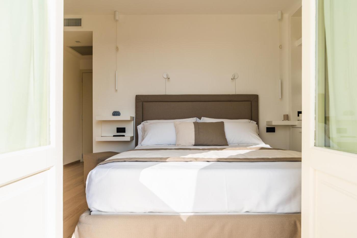 Suite. Suite dotata di 1 camera da letto separata, ingresso indipendente, aria condizionata, 1 soggiorno e 1 bagno con doccia a filo pavimento e bidet. La sistemazione dispone di pareti insonorizzate, terrazza affacciata sulla città e TV a schermo piatto con canali via cavo. L’alloggio presenta 2 letti. ;