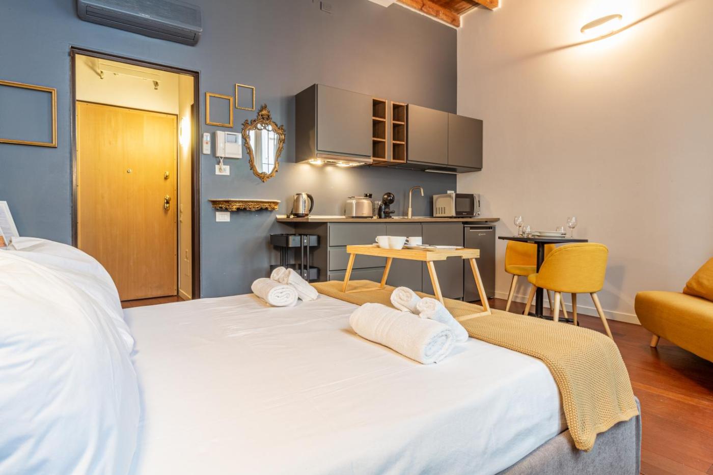 Appartamento con 1 Camera da Letto. Providing free toiletries, this apartment includes a private bathroom with a shower, a bidet and a hairdryer. In the fully equipped kitchen, guests will find a stovetop, a refrigerator, a dishwasher and kitchenware. This apartment is air-conditioned and features a TV with cable channels, a washing machine, a tea and coffee maker and a wardrobe.