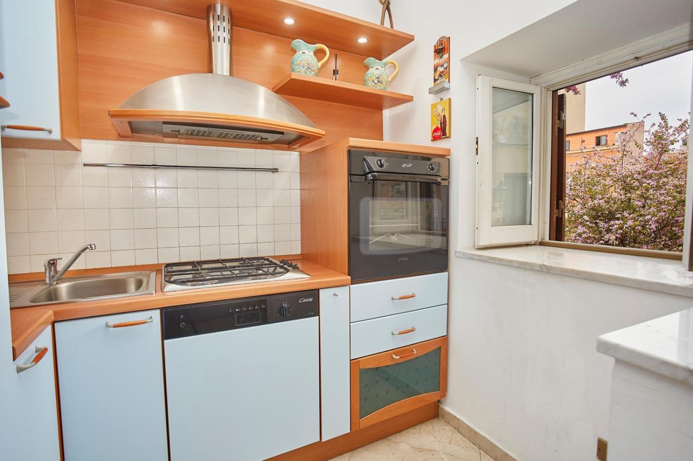 Questa casa vacanze con 3 camere da letto e aria condizionata presenta 2 bagni con bidet, doccia edi cortesia. La cucina dispone di frigorifero, lavastoviglie e microonde, più macchina da caffè e bollitore elettrico.