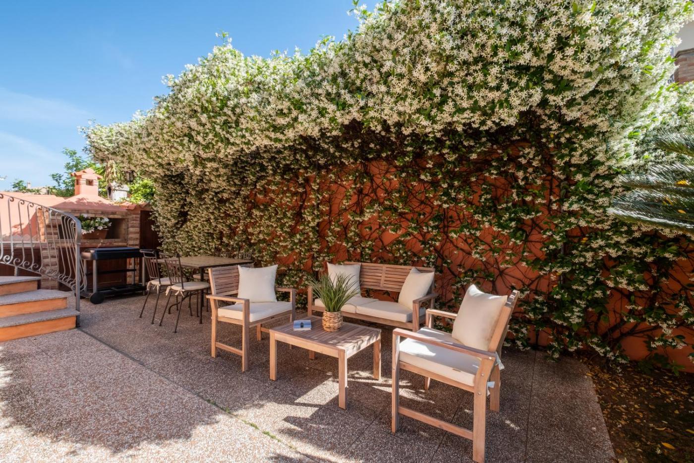 Questa casa vacanze prevede 2 camere da letto, 2 bagni, lenzuola, asciugamani, una TV a schermo piatto, una zona pranzo, una cucina con utensili e una terrazza con vista sul giardino.