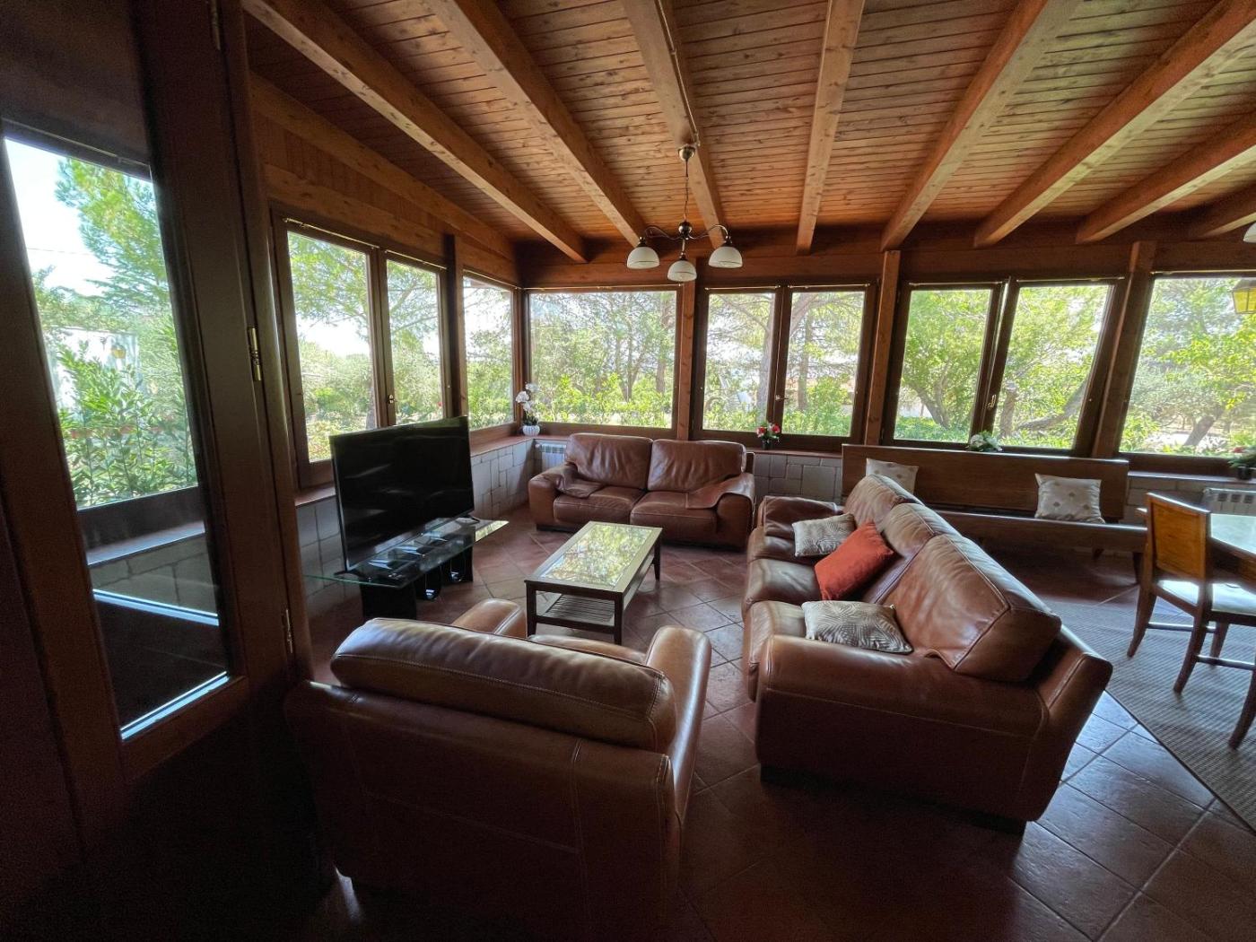 Villa con 3 Camere da Letto. The fireplace is the standout feature of this villa. Boasting a private entrance, this air-conditioned villa features 2 living rooms, 3 separate bedrooms and 2 bathrooms with a shower and a bidet. Guests will find a stovetop, a refrigerator, kitchenware and an oven in the well-equipped kitchen. The villa also comes with a barbecue. Featuring a balcony with garden views, this villa also features a washing machine and a flat-screen TV with satellite channels. The unit has 5 beds.