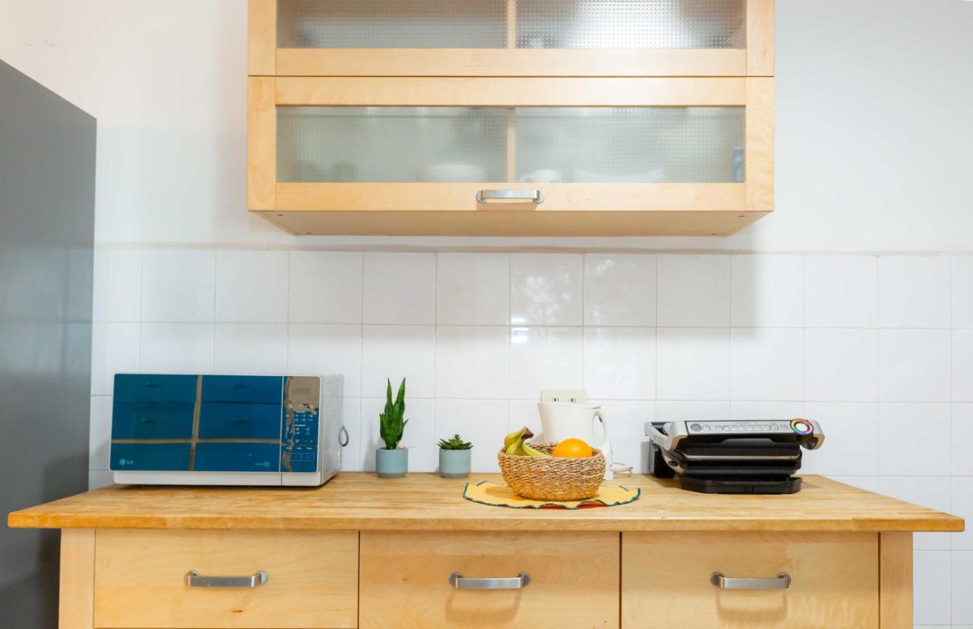 Questo appartamento comprende 1 camera da letto, un soggiorno, una cucina con utensili, frigorifero e bollitore elettrico, e 1 bagno con bidet e doccia.