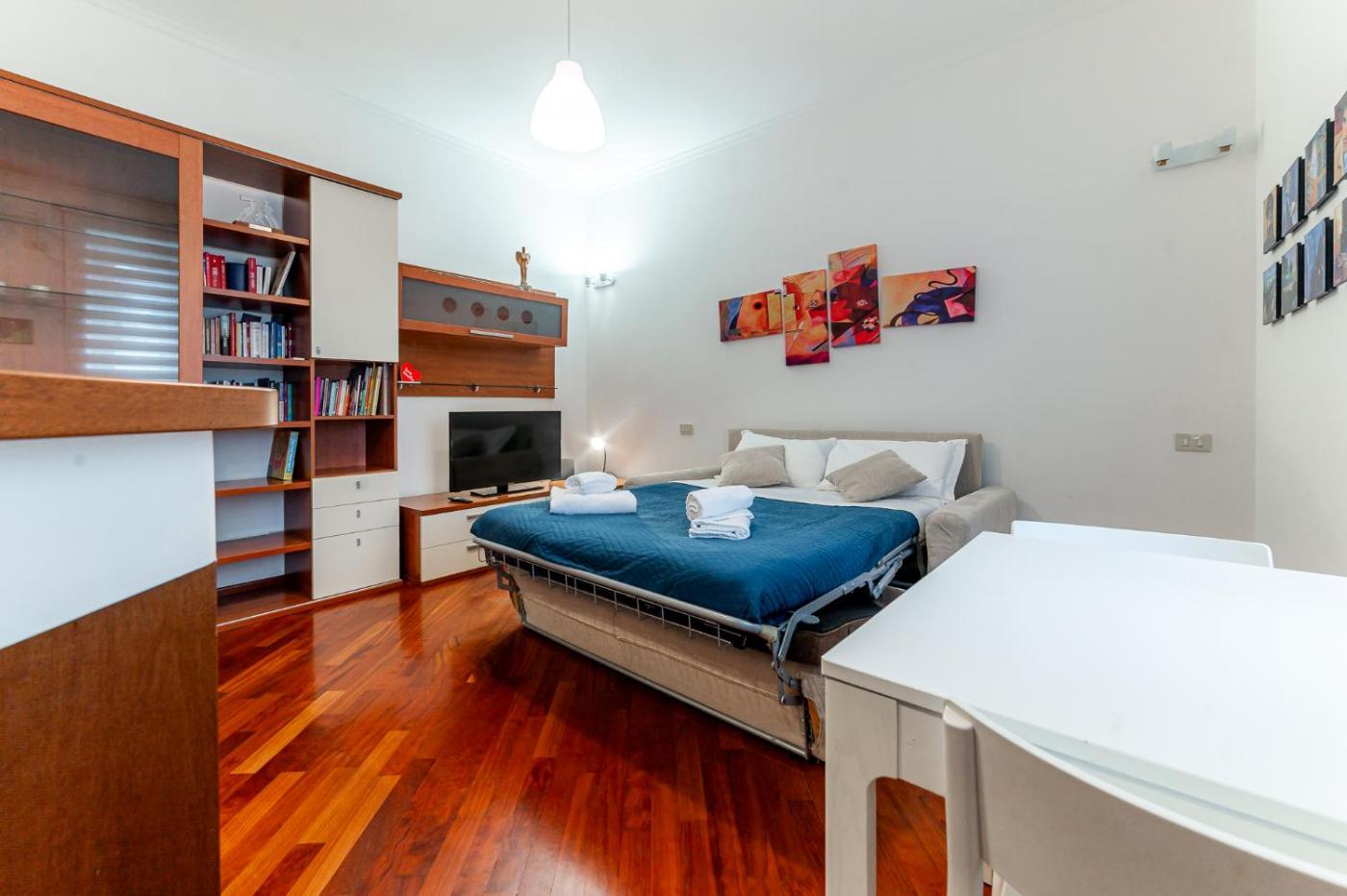 Appartamento Standard con 1 Camera da Letto. Boasting a private entrance, this air-conditioned apartment features 1 living room, 1 separate bedroom and 1 bathroom with a shower and a bidet. Meals can be prepared in the well-fitted kitchen, which has a stovetop, a refrigerator, kitchenware and an oven. The apartment features a flat-screen TV, a washing machine, soundproof walls, a tea and coffee maker as well as city views. The unit has 2 beds.