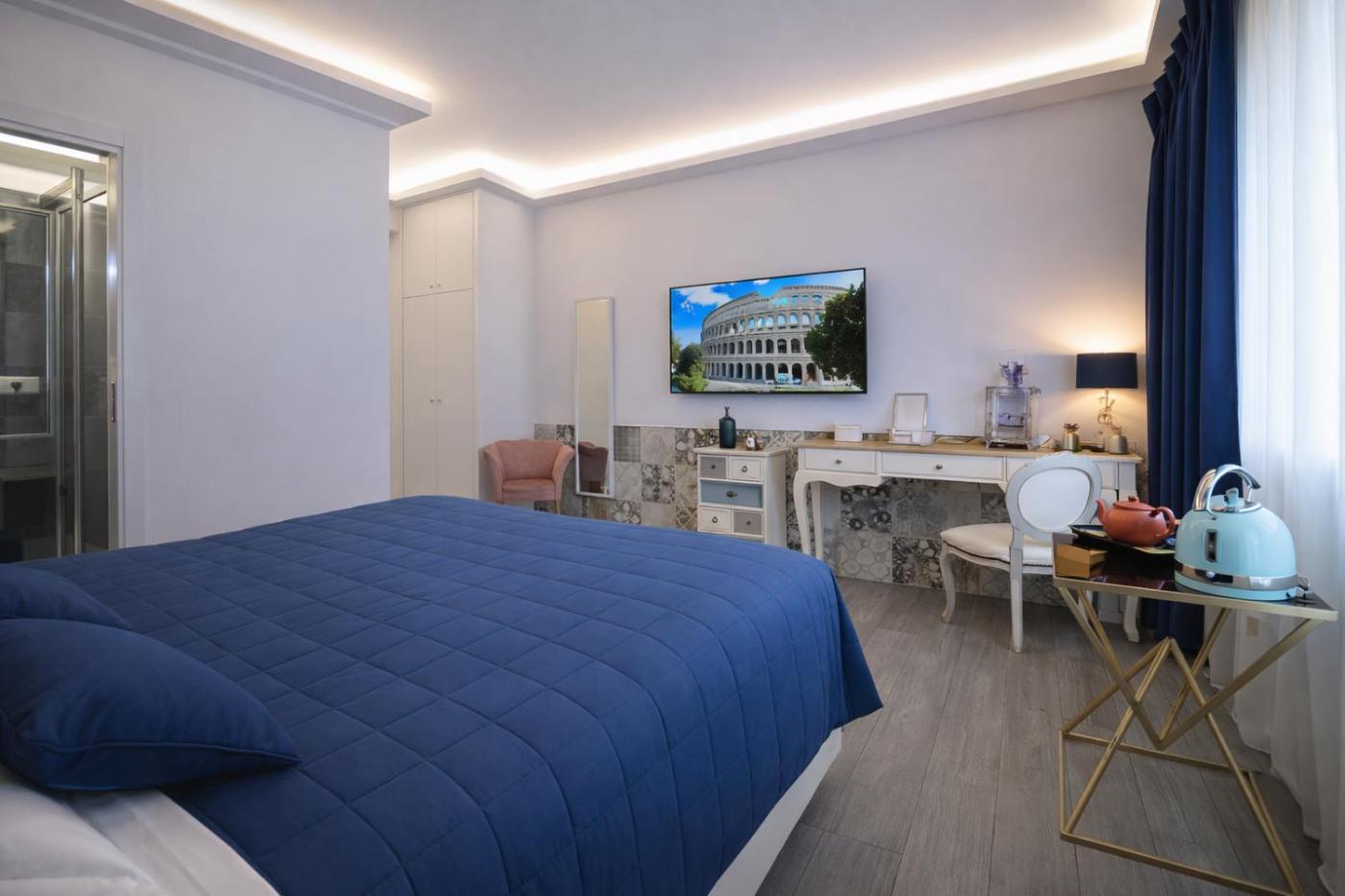 Camera Matrimoniale Superior. Providing free toiletries and bathrobes, this double room includes a private bathroom with a walk-in shower, a bath and a bidet. Guests can make meals in the kitchen that comes with kitchenware, an oven, a microwave and a toaster. The air-conditioned double room provides a flat-screen TV with streaming services, soundproof walls, a tea and coffee maker, a seating area as well as city views. The unit offers 1 bed. ;