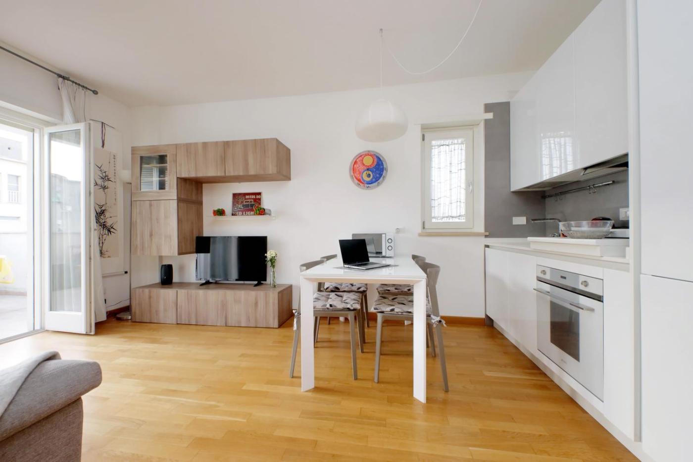 Appartamento con 1 Camera da Letto. This apartment comprises 1 living room, 1 separate bedroom and 1 bathroom with a shower and free toiletries. In the well-fitted kitchen, guests will find a stovetop, a refrigerator, a dishwasher and kitchenware. Featuring a terrace with city views, this apartment also provides a tea and coffee maker and a TV with cable channels. The unit offers 2 beds.