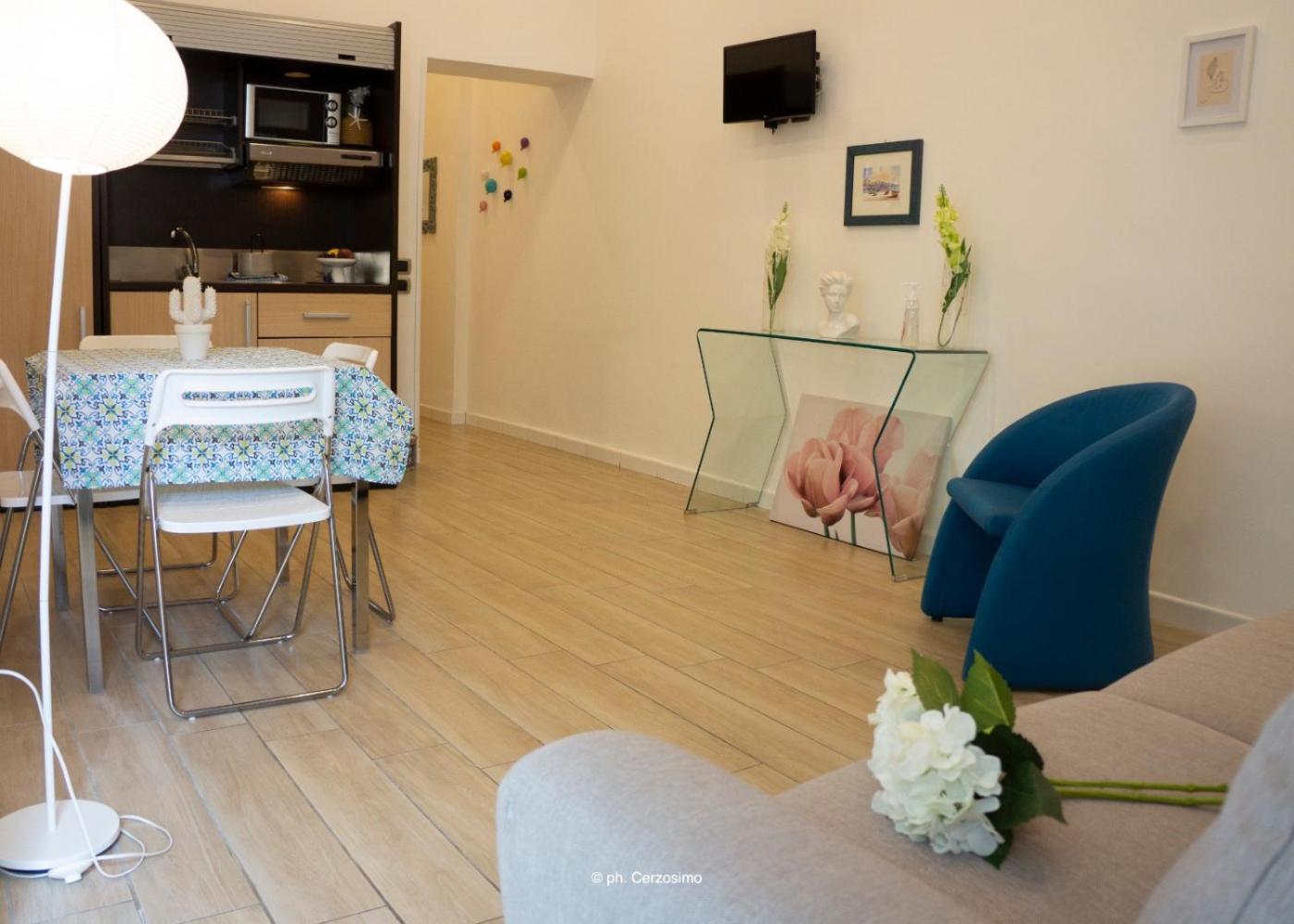 Appartamento con 1 Camera da Letto. This air-conditioned apartment features 1 living room, 1 separate bedroom and 1 bathroom with a shower. Guests can make meals in the kitchen that has a stovetop, a refrigerator, kitchenware and a microwave. Boasting a balcony, this apartment also features a tea and coffee maker, a seating area and a flat-screen TV. The unit has 2 beds.