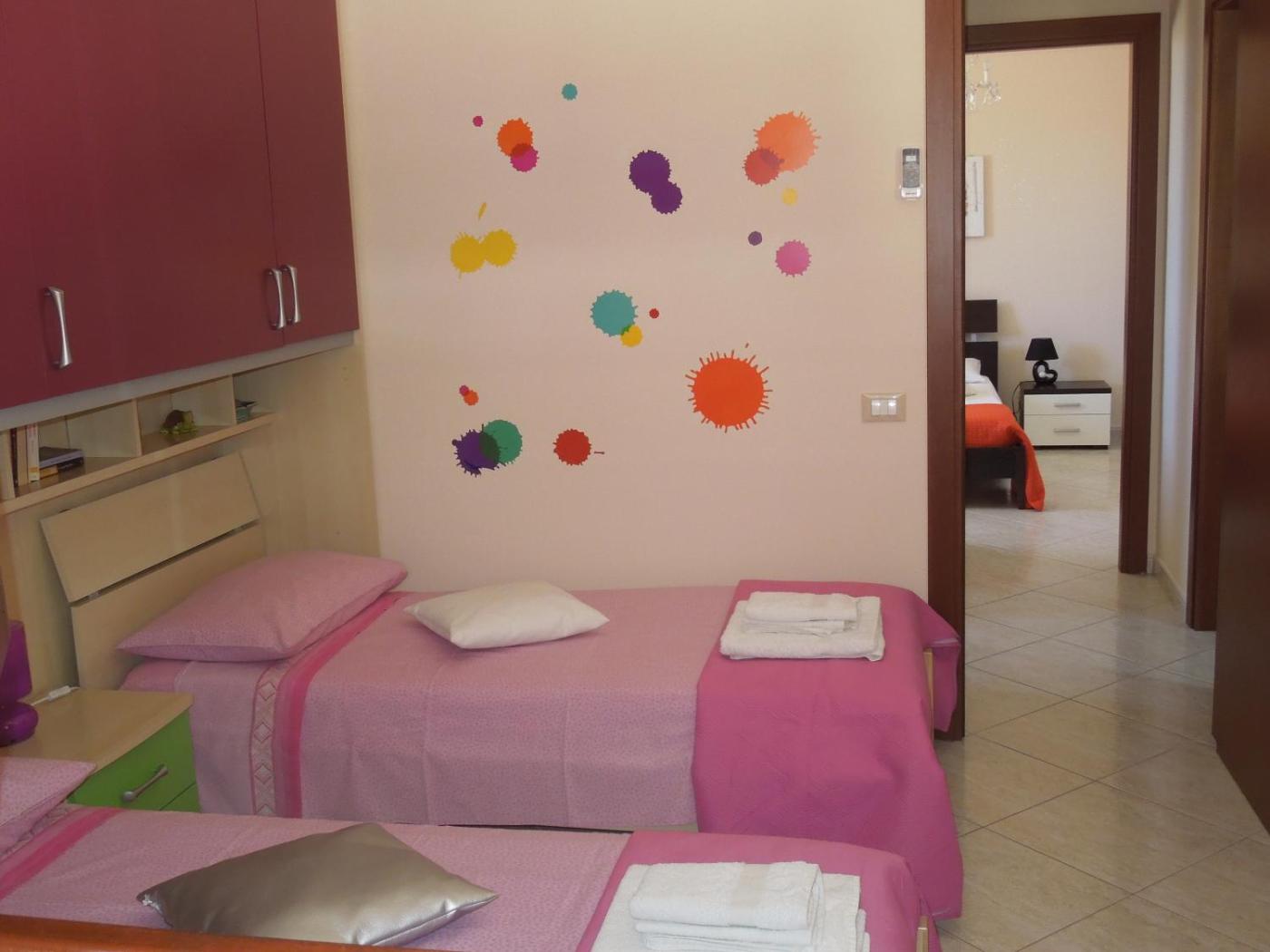 Casa Vacanze. Boasting a private entrance, this air-conditioned holiday home includes 1 living room, 2 separate bedrooms and 1 bathroom with a shower and a bidet. Guests can make meals in the kitchen that is fitted with a stovetop, a refrigerator, kitchenware and an oven. The holiday home has tiled floors, a seating area with a flat-screen TV, a washing machine, a tea and coffee maker as well as garden views. The unit has 4 beds.