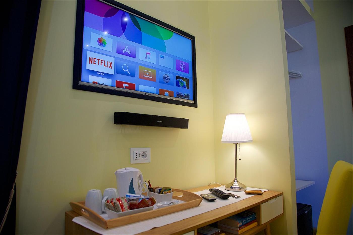 Questo bed and breakfast offre una TV a schermo piatto e un bagno privato condi cortesia, asciugacapelli e bidet. In dotazione anche un frigorifero e un minibar, oltre a una macchina da caffè e un bollitore elettrico.