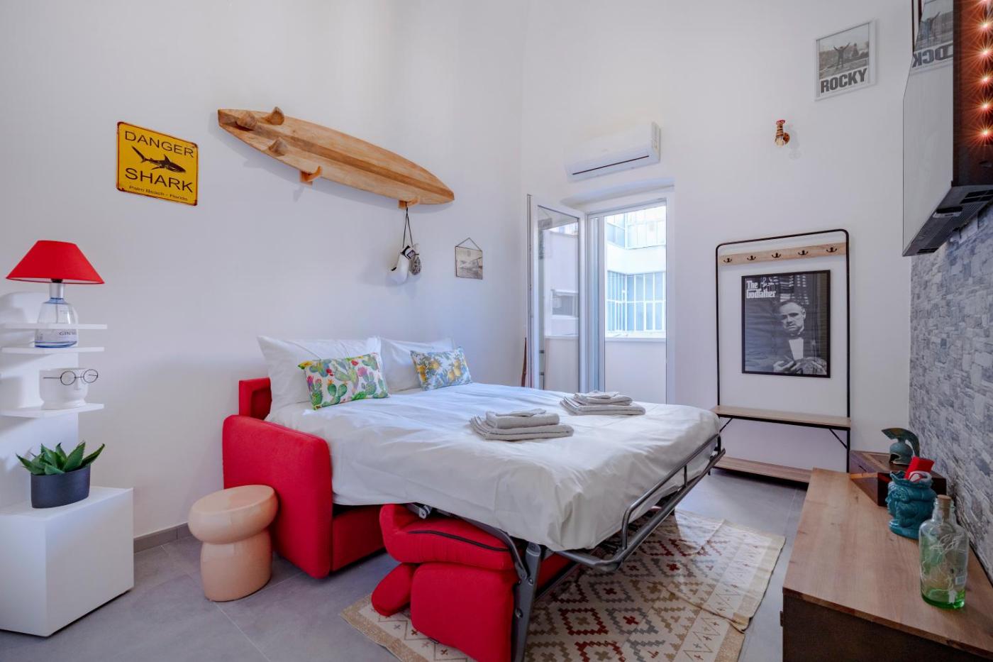 Appartamento con 1 Camera da Letto. This spacious apartment features 1 living room, 1 separate bedroom and 1 bathroom with a shower and a bidet. A kitchen fitted with a stovetop, a refrigerator and kitchenware is available for cooking and storing food. This apartment is air-conditioned and has a seating area with a flat-screen TV, a washing machine, a coffee machine, a dining area, as well as a tiled floor. The unit has 2 beds.