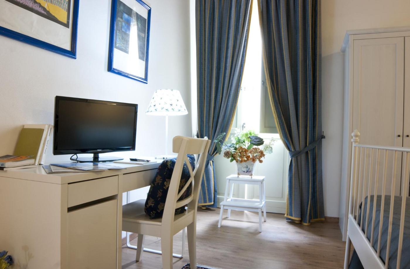 Camera Matrimoniale Economy. Camera matrimoniale climatizzata con ingresso indipendente e bagno privato con doccia e bidet. La sistemazione dispone di TV a schermo piatto, armadio, cassaforte, pavimento in parquet e vista su un cortile interno.