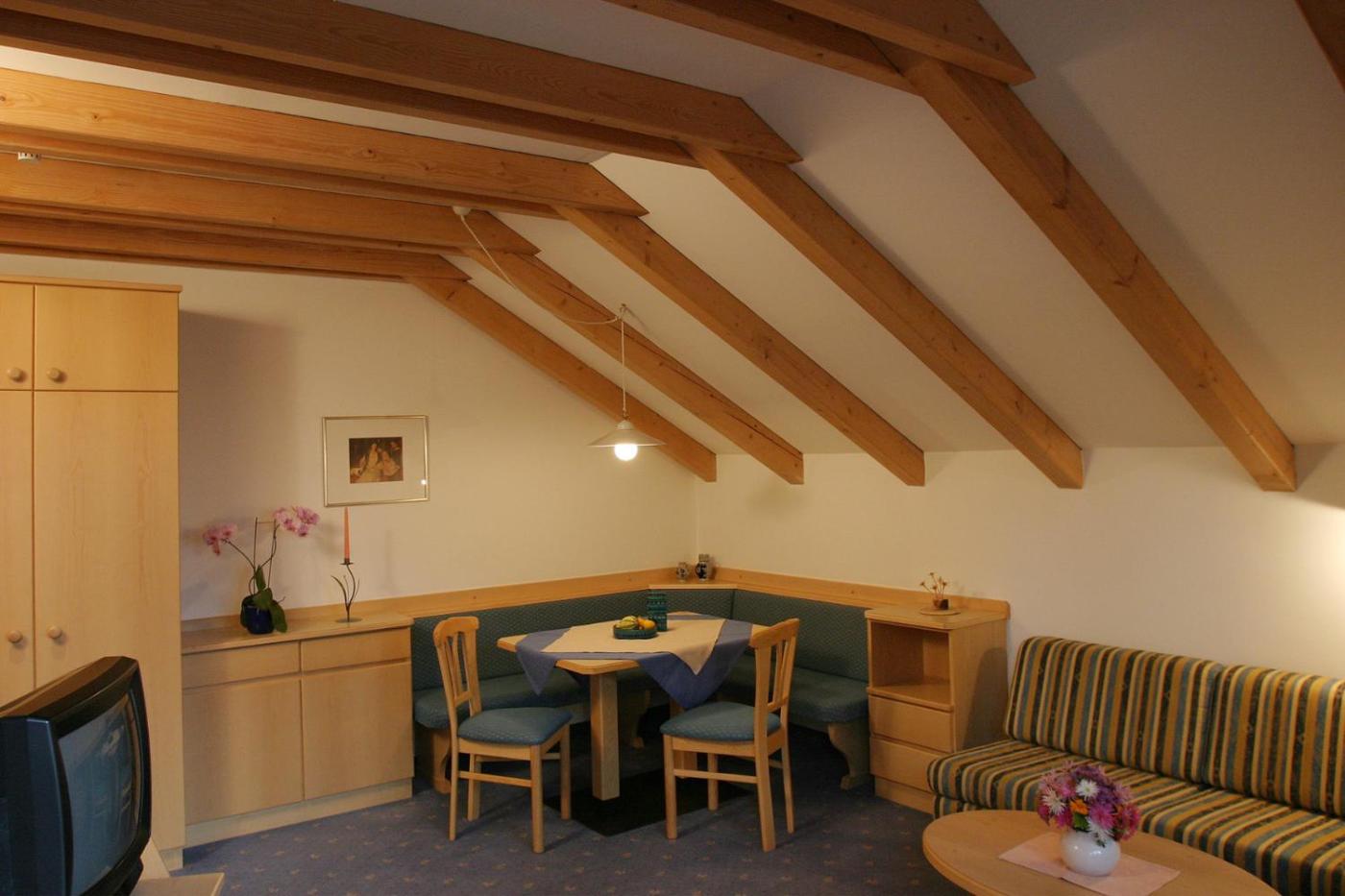 Appartamento con 1 Camera da Letto (2 Adulti). Appartamento in stile alpino dotato di balcone con vista sulle Dolomiti. Dispone inoltre di TV a schermo piatto, cucina e zona soggiornopranzo.